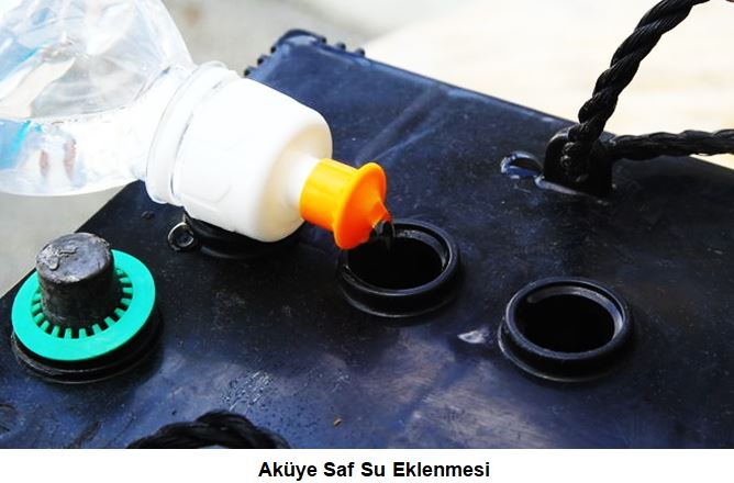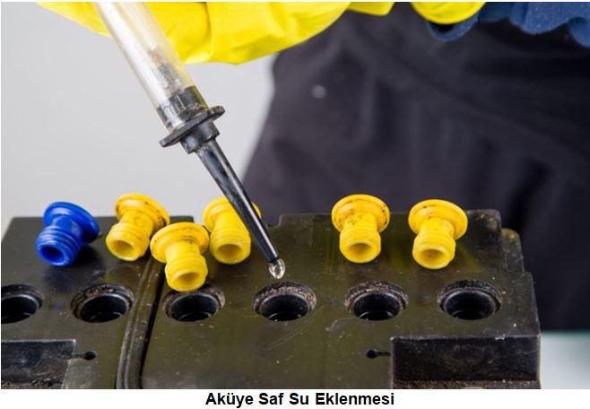 su ilave edilerek elektrolit seviyesi tamamlanır.