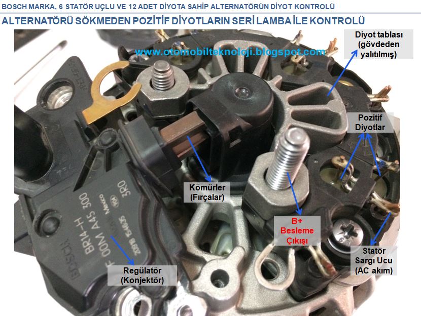 Bosch alternatörün sökülmeden pratik yöntemle kontrol edilmesi.