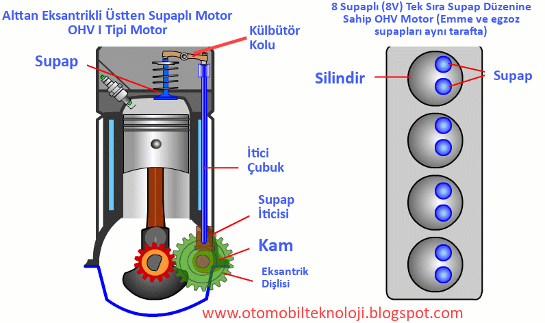 – I Tipi Motorlar (OHV: Over Head Valve: Üstten Supaplı Motorlar)