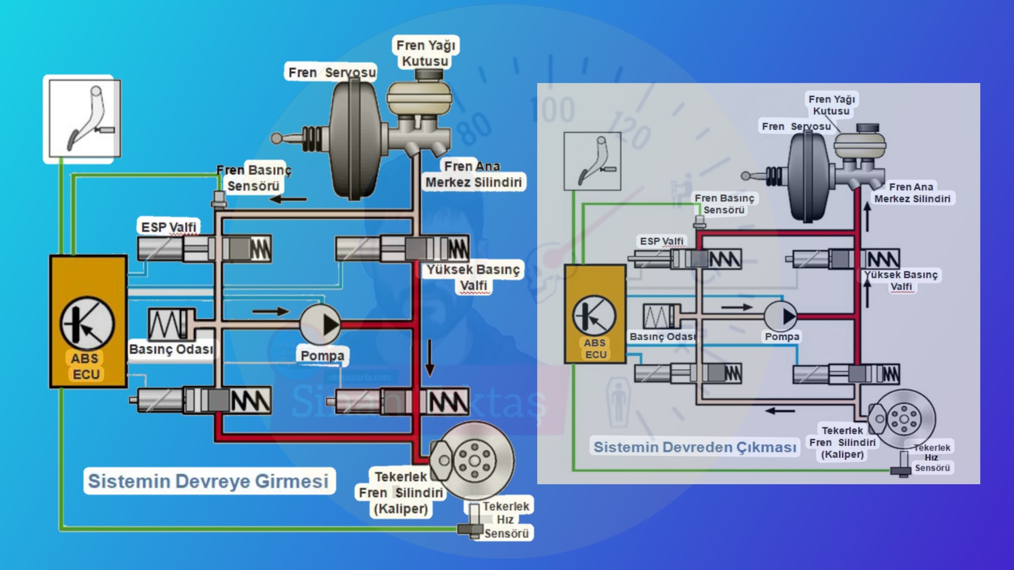 ABS kontrol ünitesi 3 temel sensörden gelen sinyalleri değerlendirerek, fren destek sisteminin devreye sokar: