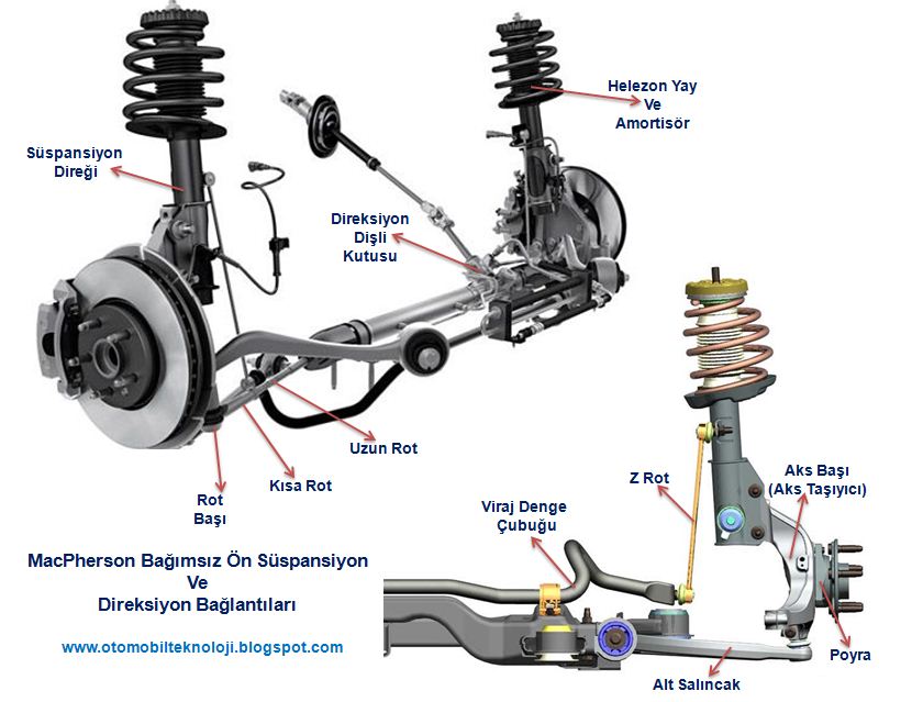 araçların ön tekerleklerinde bağımsız süspansiyon (macpherson veya çift