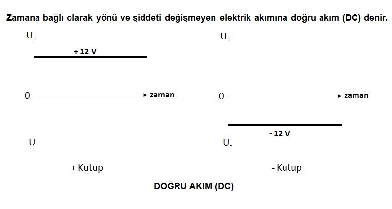 elektrik akımının yönü, sürekli olarak artı (+) ve eksi (-) olmak üzere