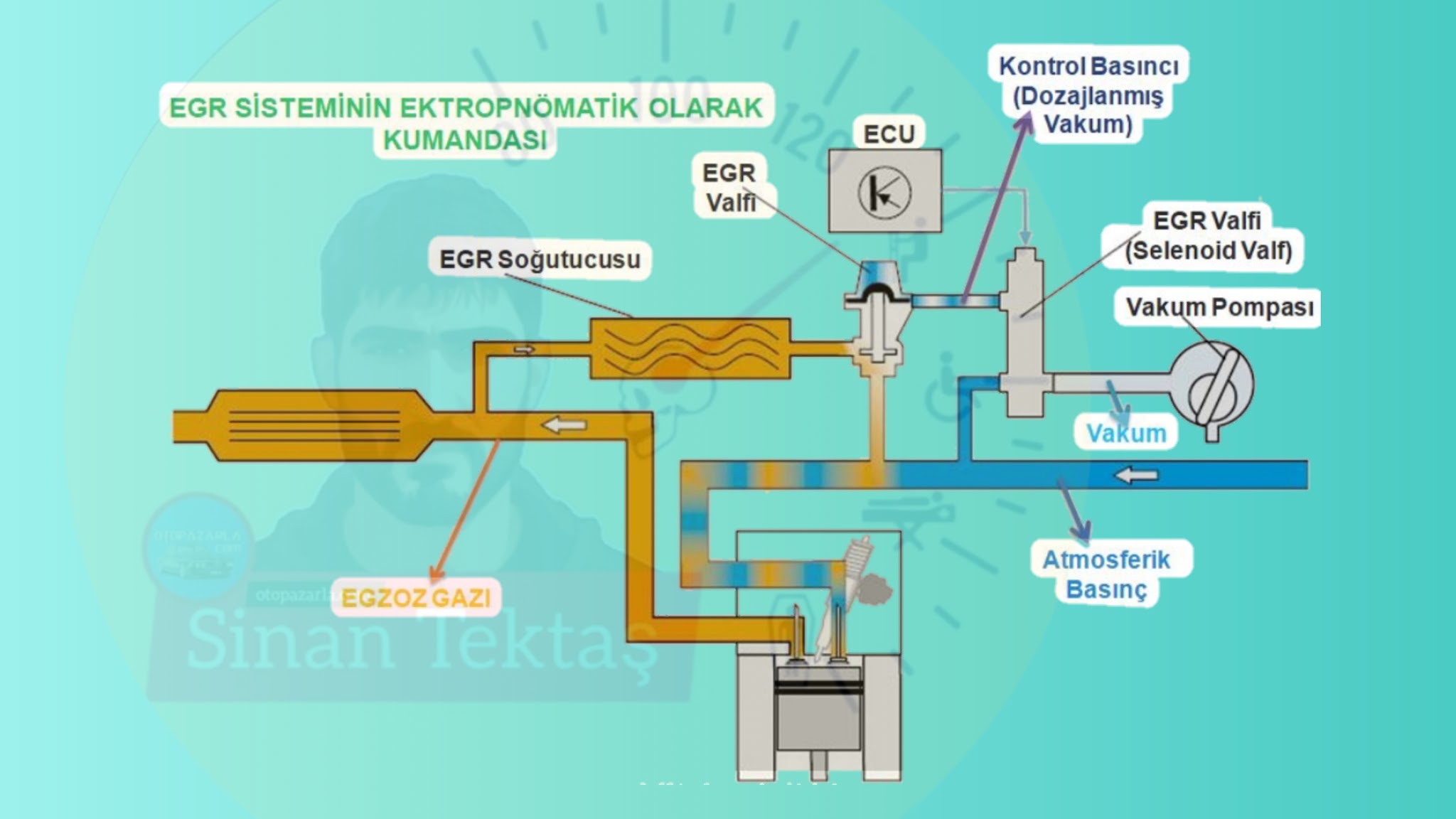 2. Elektropnömatik (Selenoid Valfli) Kumanda: Benzinli araçlarda emme manifoldu vakumu, dizel araçlarda ise vakum pompasından etki ettirilen vakum, ECU kumandasında çalışan bir selenoid valf ile dozajlanarak, “diyaframlı vakum tüpüne” etki eder, böylece egr valfi hassas olarak açılır-kapanır.