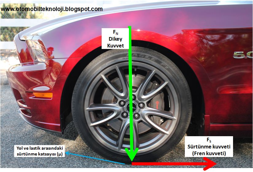 nihayetinde, bizim işimize yarayan frenleme kuvveti lastikle yol arasında