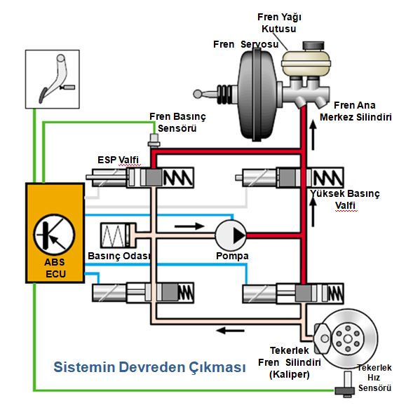 ABS devreye girdiğinde, ESP valfi kapanır, yüksek