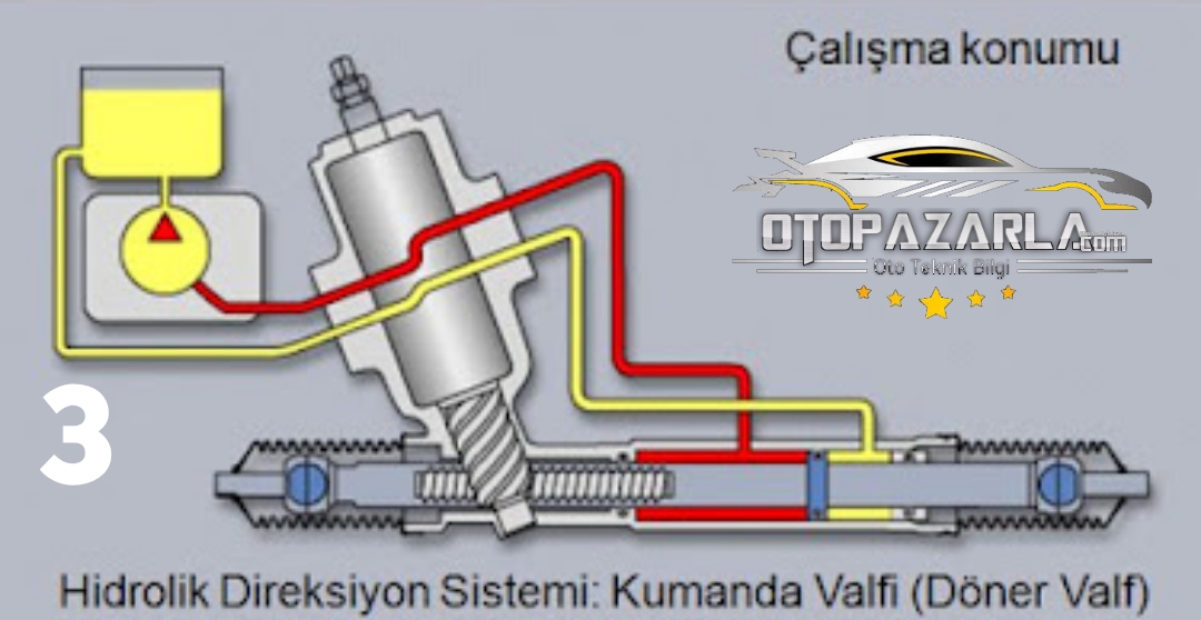 Hidrolik direksiyon sisteminde, hem pinyon kremayer dişli kutusu (binek araçlar) hem de bilyeli sonsuz vida tip dişli kutusu (ağır vasıtalar) içinde, bir hidrolik kumanda valfi ünitesi (döner valf) kullanılır. Burada önce pinyon kremayer tip direksiyon dişli kutusundaki hidrolik kumanda valfinin çalışmasına, daha sonra sonsuz vidalı döner bilyeli tipdekine değinilecektir.