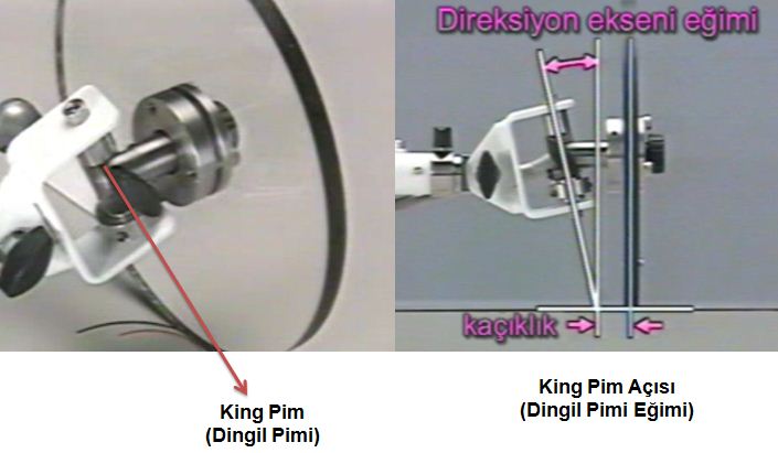 etrafında döner. Bu dönüş sırasında direksiyon ekseni eğimi (king pim) açısı
