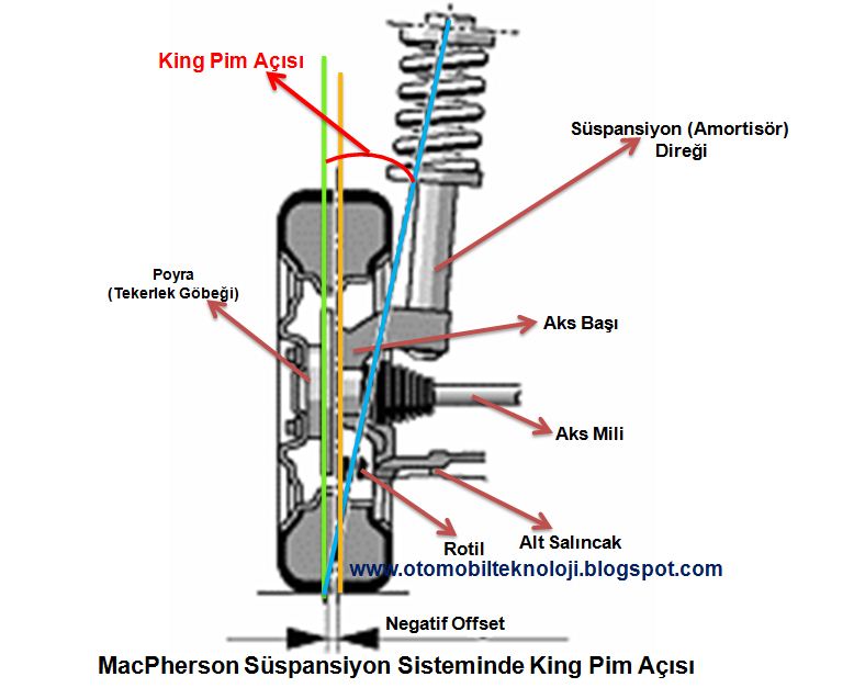 (MacPherson Bağımsız Süspansiyonda King Pim Açısı)