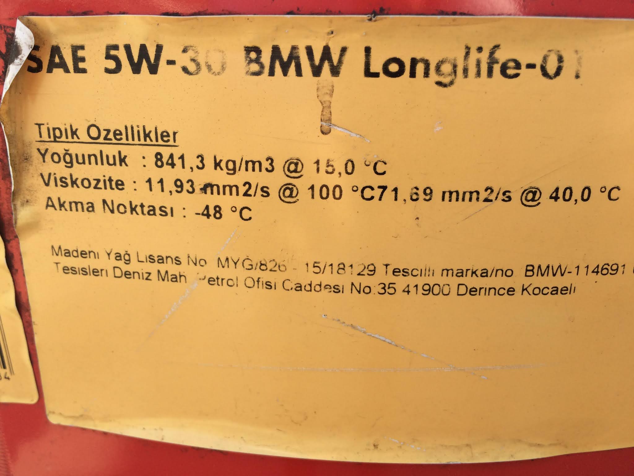 Bir Motor Yağı Varilindeki Etiket İncelemesi
