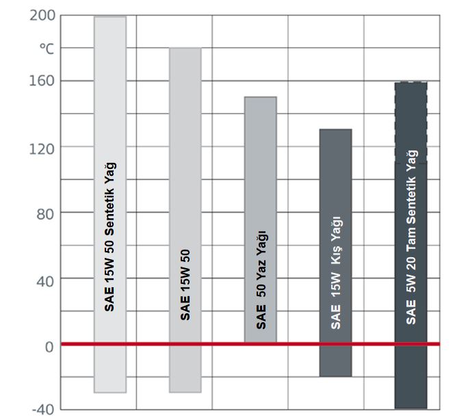 Otomotiv Mühendisleri Topluluğu). Sae sistemi, çeşitli sıcaklık aralıkları için