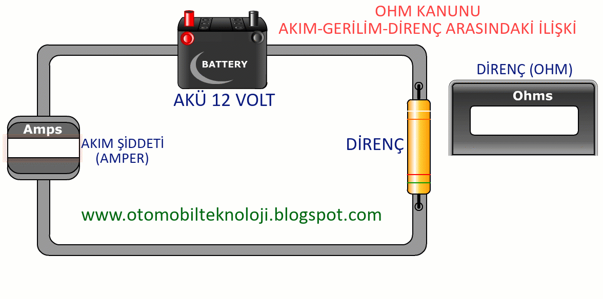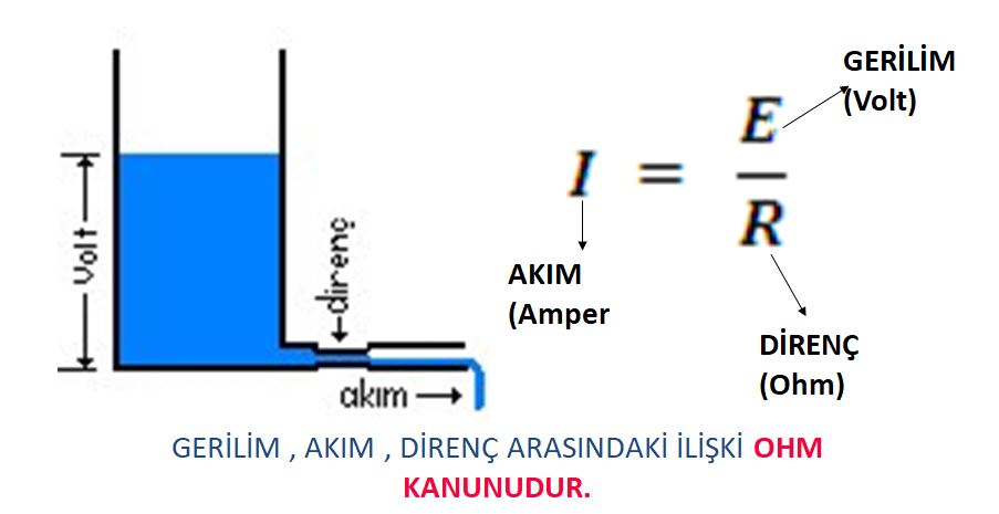kanununa göre bir elektrik devresinde; akım şiddeti (amper) gerilimle doğru, dirençle ters
