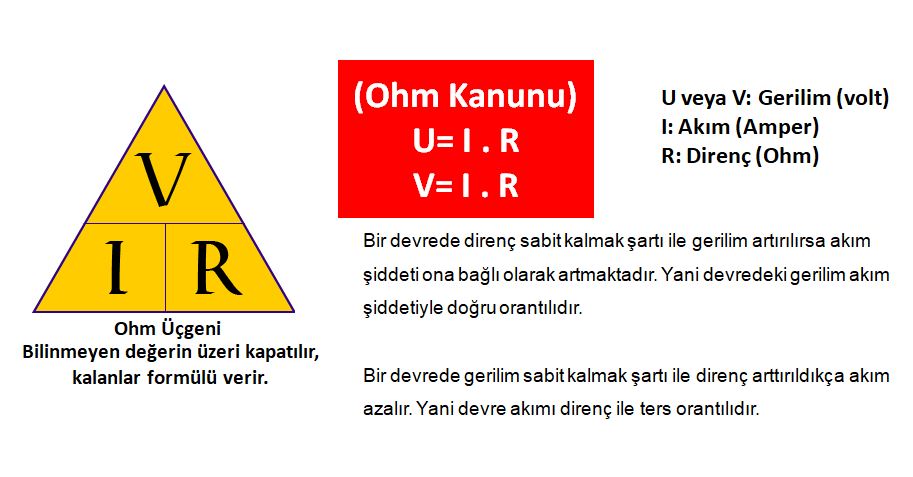 formülü V= I x R ‘dir. VIR diye kolayca ezberlenebilir.