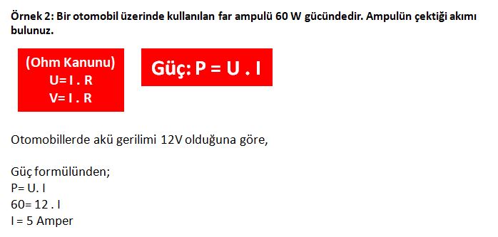 formülü, çektiği akım (amper) ve sahip olduğu direnç (ohm) bilinen bir elektrik