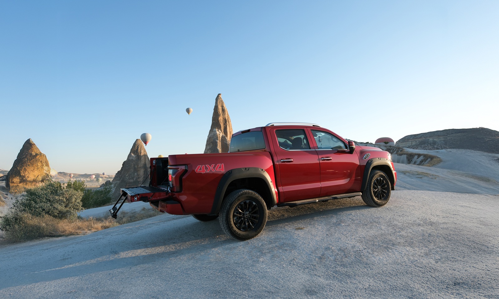 4 silindirli 2.0Lt dizel 48V hibrit motora sahip Tunland V9, farklı sürüş koşullarında tork taleplerine göre devreye giren elektrik desteğiyle yakıt tüketimini optimize ediyor. Gelişmiş elektronik kontrollü 4×4 sistemi, arka diferansiyel kilidi, ön çift salıncak ve arka çok bağlantılı süspansiyon yapısıyla hem şehir konforunu hem de arazi performansını harmanlıyor.