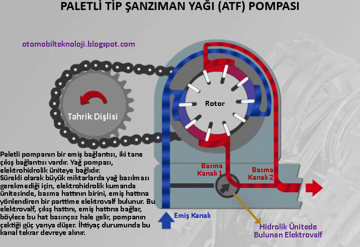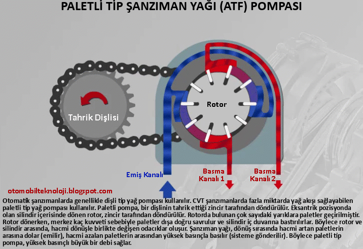 dönüşle birlikte değişen odacıklar oluşur. Şanzıman yağı, dönüş sırasında hacmi