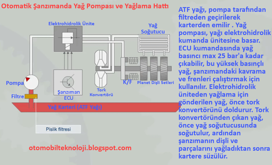 şanzıman yağının (atf) yeteri miktarda ve basınçta ilgili elemanları