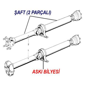 Çok Parçalı Şaftlar : Otomobillerde genellikle kullanılır. Çok parçalı şaft, şaftın daha açılı bir şekilde bağlanmasını sağlar, daha az yer kaplar, aracın yere daha yakın olabilmesini sağlar, böylece ağırlık merkezi de yere daha yakın olur. İki parçalı şaftlarda askı bilyası bulunur.