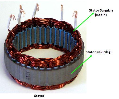 arızalanacaktır ve elektrik üretmeyecektir. Statörde üç fazlı (trifaze)