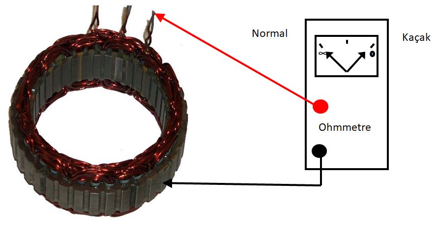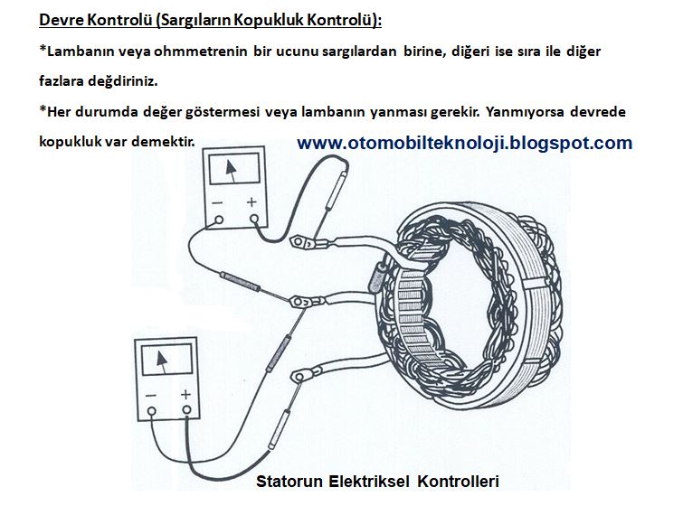 Seri lamba ile statörün kopukluk kontrolü ve şasiye kaçak kontrolü