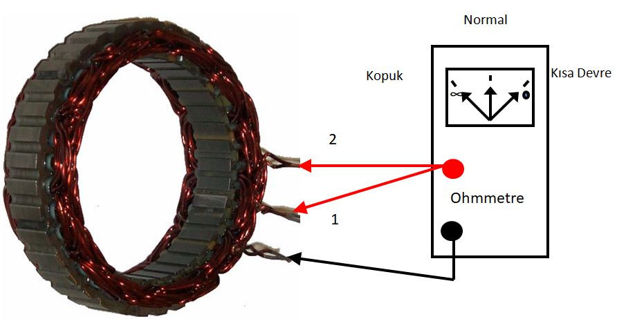 düşük bir direnç okunursa, statör sargılarında kısa devre var demektir.