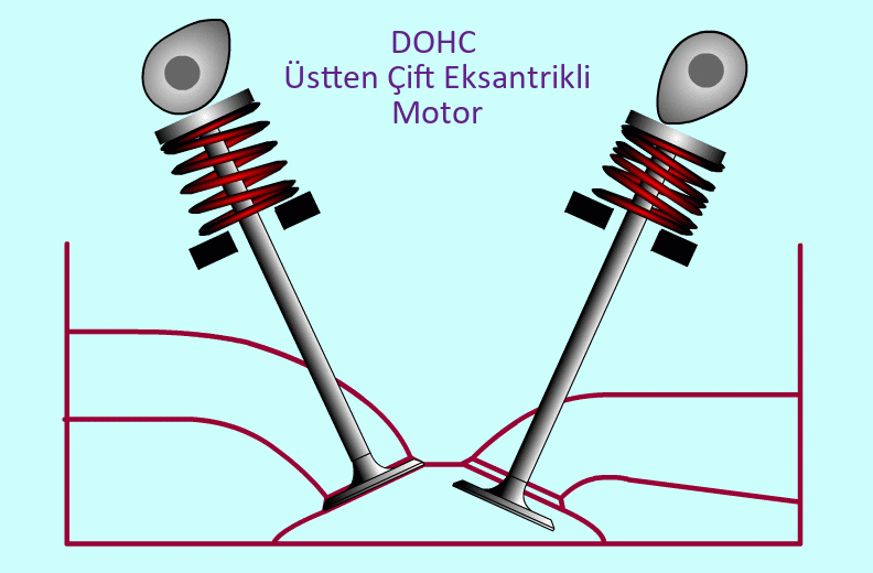 DOHCÜstten Çift Eksantrikli Motorlar (DOHC: Double Over Head Camshaft)