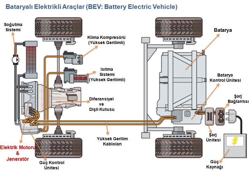 Tam elektrikli araçlar, yanmalı motorlarda olduğu gibi geleneksel güç aktarma organlarına (vites kutusu) ihtiyaç duymazlar. Aktarma organlarında sadece redüksiyon dişlileri ve diferansiyel bulunur. Debriyaj sistemi...