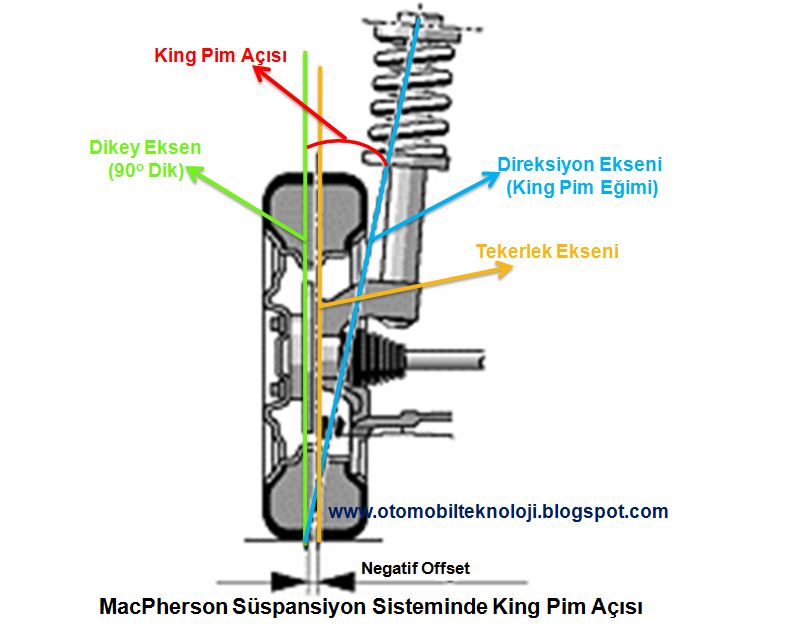 KING PİM AÇISI King pim açısı: direksiyon ekseni ile dikey eksen arasındaki açıdır. Direksiyon ekseni: Direksiyon döndürüldüğünde, tekerleklerin dikey olarak etrafında döndüğü eksendir. Kamyonlarda direksiyon eksenini; dingil...