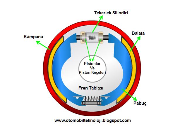 kuvvetine dönüştürülür ve pabuçları kampanaya bastırarak frenlemeyi meydana