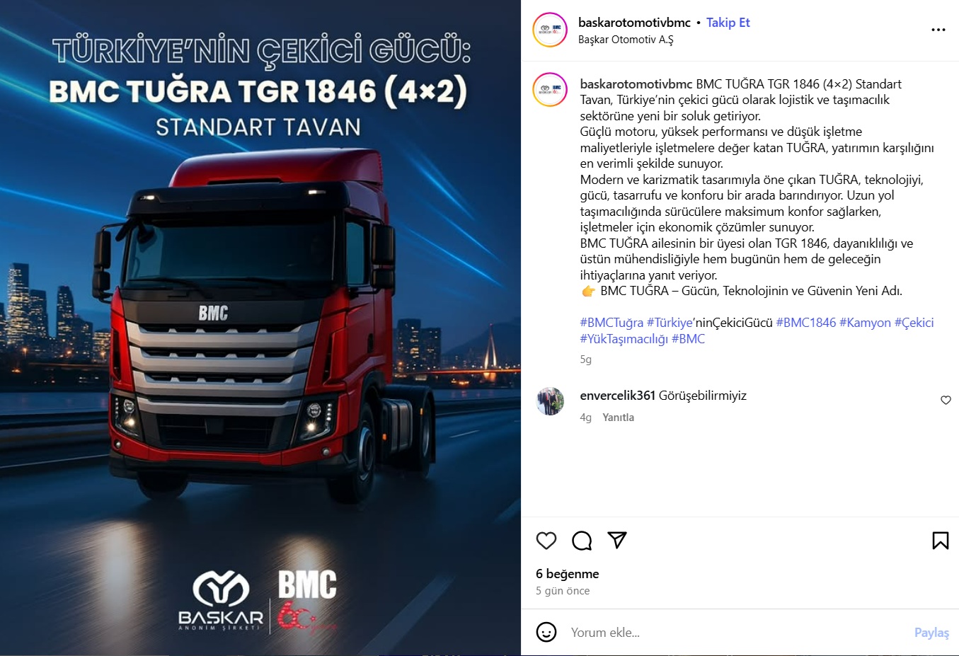 #BMCTuğra #Türkiye’ninÇekiciGücü #BMC1846 #Kamyon #Çekici #YükTaşımacılığı #BMC “