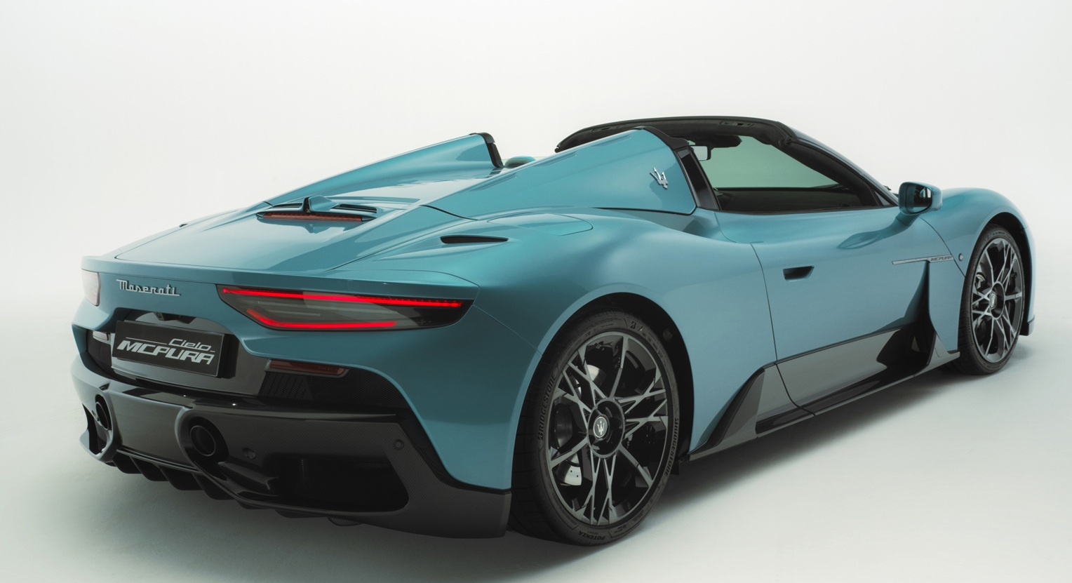 Yeni süper spor otomobil, Maserati Fuoriserie kişiselleştirme programının bir parçası olarak tasarlanan Ai Aqua Rainbow gövde rengi, coupe için mat ve MCPURA Cielo için parlak olarak sunuldu. Bu, güneşte değişen ve gökkuşağı etkisi yaratan bir mavi olarak dikkat çekiyor. Prizmadan esinleniyor: Beyaz ışığı parçalıyor, sonra tüm yönlerini yakalayıp eşsiz ve saf bir renk yaratıyor. Izgara ve C sütunundaki Trident ile aracın her iki tarafındaki logolar mavi mika ile macenta renginde olup, bu kombinasyon daha da şık bir görünüm üretiyor. Aynı renkteki logo, jantların ortasında da belirli bir parlak elmas kesim kaplama ile tekrarlanıyor. Coupe versiyonda detaylar parlak, cabrio versiyonda ise mat olarak uygulanıyor. Son olarak her iki otomobilin de en dikkat çeken özelliklerinden biri olarak, tamamen yeni bir vurgu yakalamak üzere lazerle işlenen Trident ile Alcantara Ice koltuklar öne çıkıyor. Ortaya çıkan görüntü hem fütüristik hem de sportif. Çift taraflı bir arka plan, mavi ile kırmızının bir araya geldiği yanardöner kırmızı, şekilleri vurguluyor ve dış detayların aynı tonlarını yakalıyor.